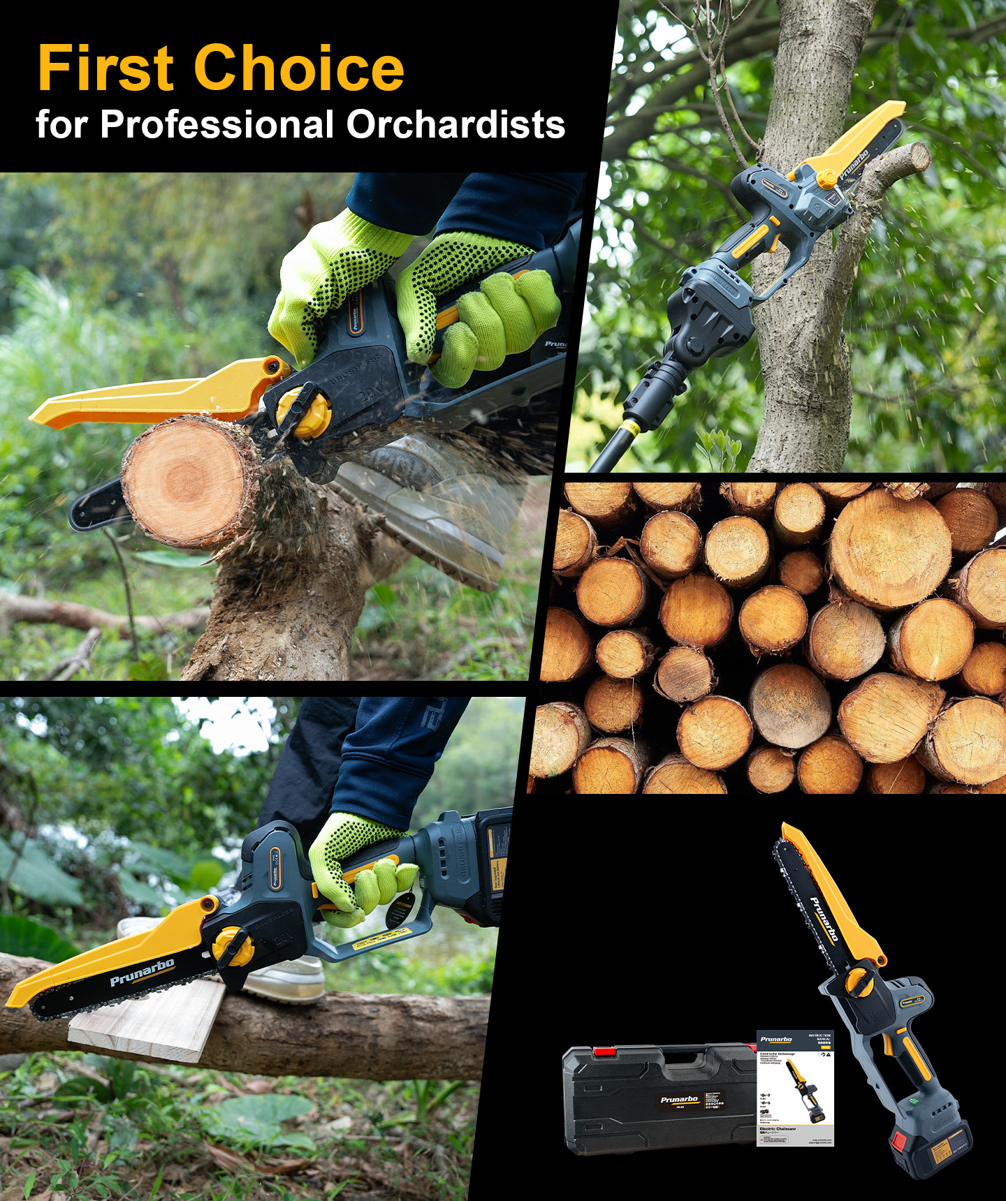 21V 8Inch Mini Chain Saw Battery Powered with Extension Pole -- Prunarbo PR-E8-Set